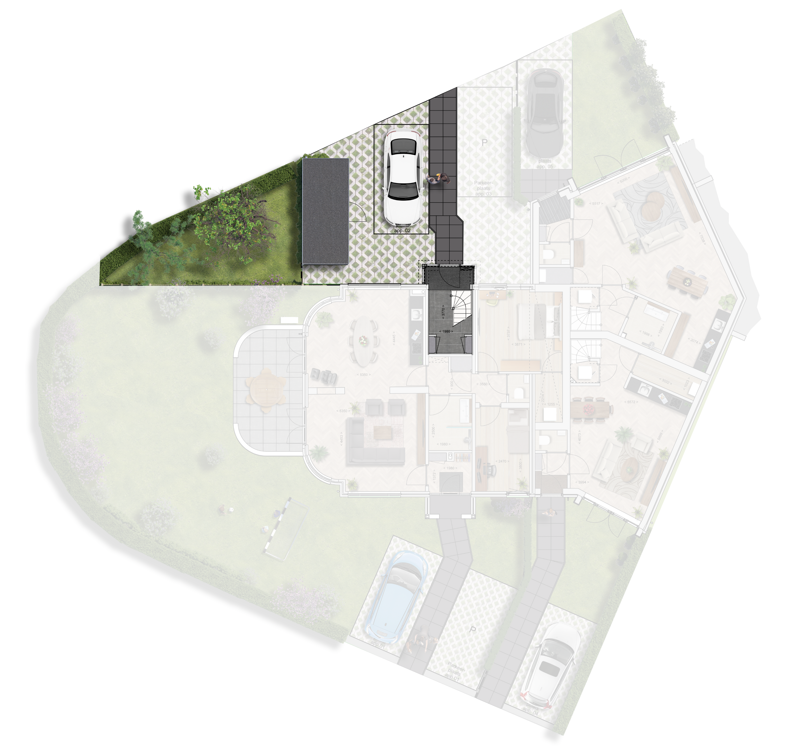 Het appartement beschikt over een eigen parkeerplaats en toegang tot de gezamenlijke fietsenberging.