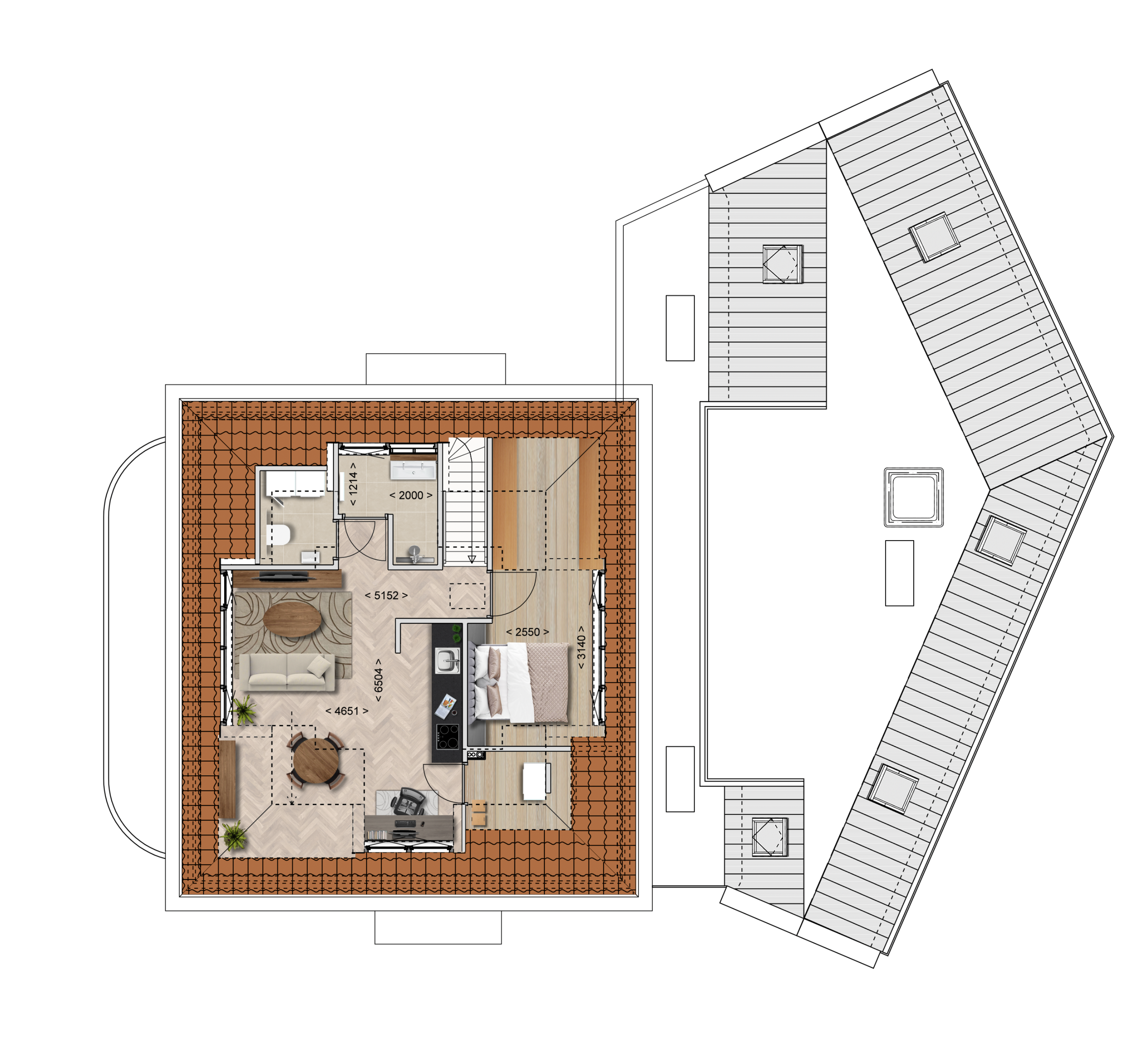 Dit tweekamerappartement op de tweede verdieping onderscheidt zich door zijn lichte en open karakter. Dankzij dakkapellen aan meerdere zijden is de woonkamer met open keuken aangenaam ruim en prettig verlicht.
